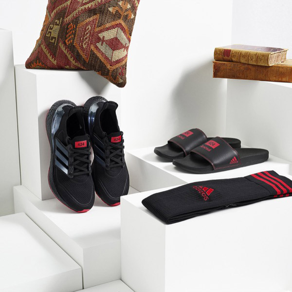 今回のコレクションアイテムは、アーセナルFCと424、そしてadidasのロゴに大胆なレッドを採用。エミレーツ・スタジアムからインスピレーションを得た赤いラインが特徴的なデザイン。