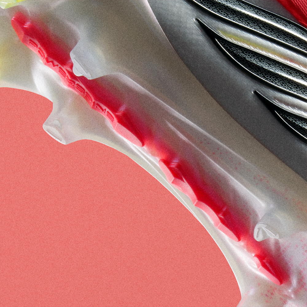 フィット感とグリップ性能の融合。柔らかさと軽さを備えた革新的メッシュアッパーに凹凸のあるグリップゾーンを一体化することで、正確なボールコントロールに貢献し、シュートやパスの精度を高める。