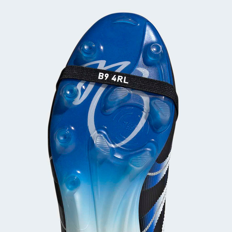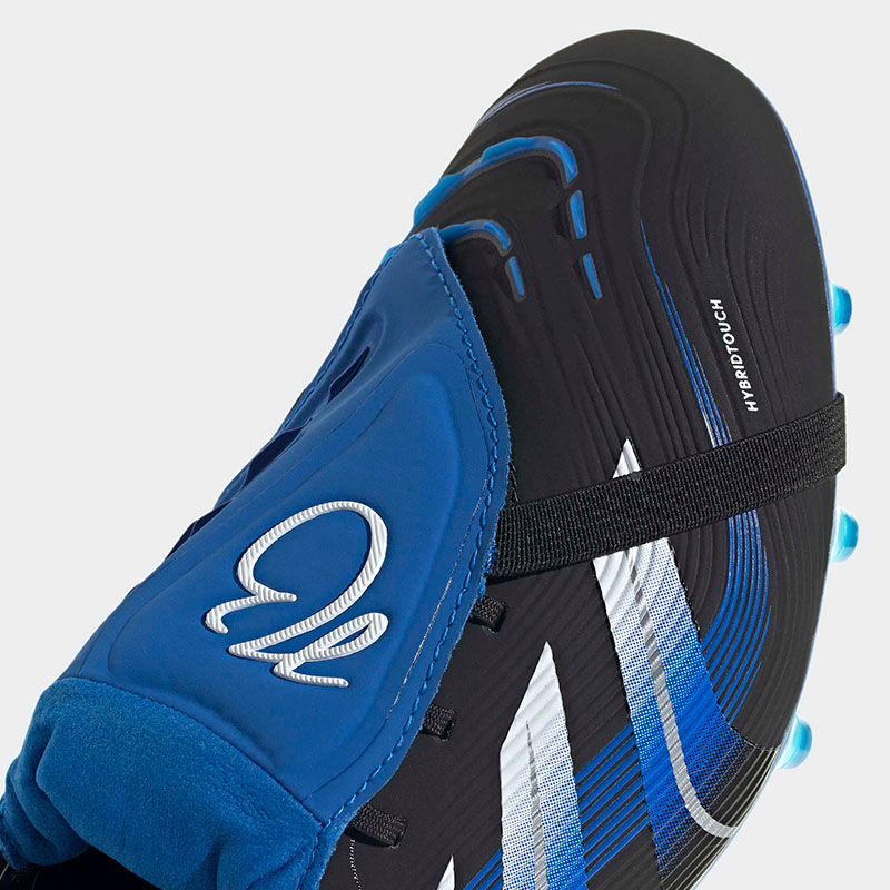 プレデターのエリートモデルに採用されているハイブリットタッチアッパー、折り返し仕様のシュータン、ラバーのストライクスキンフィンを採用。