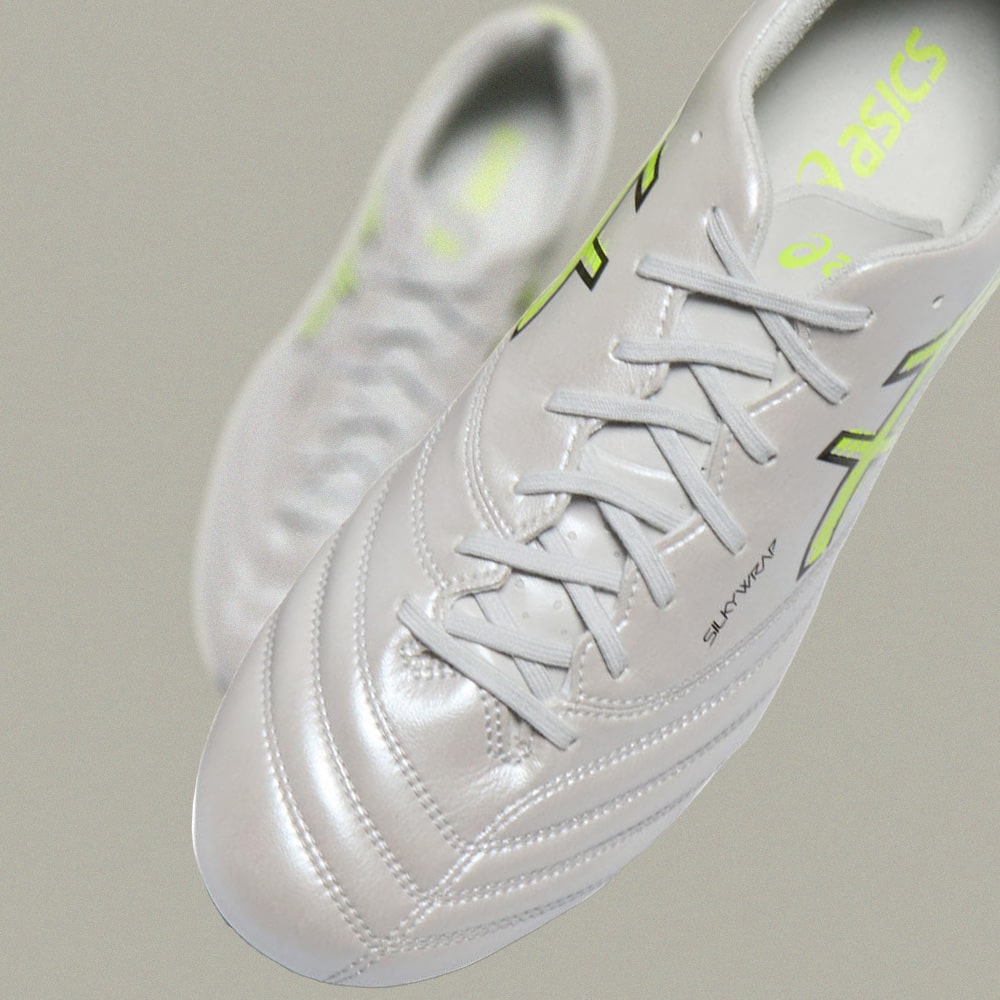 素足感覚のフィット感で繊細なタッチを生み出す、従来の天然皮革よりもやわらかなSILKYWRAPをアッパー前足部に使用。