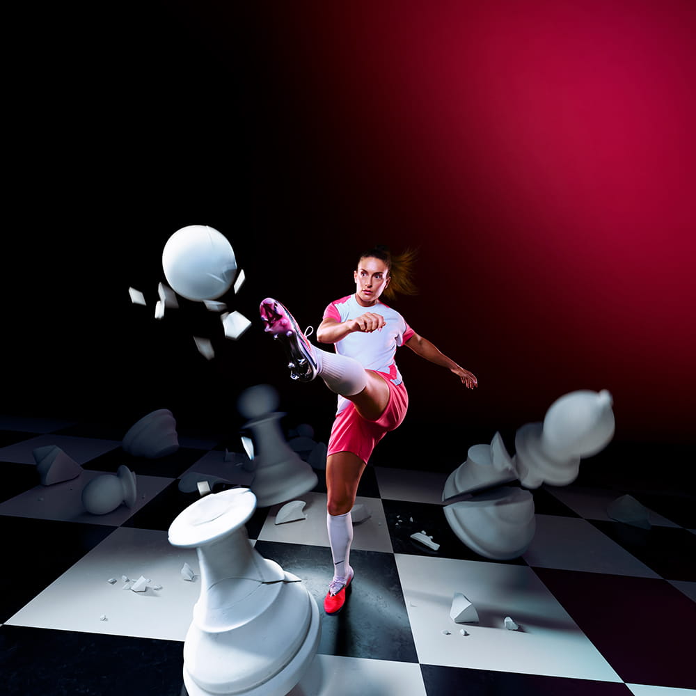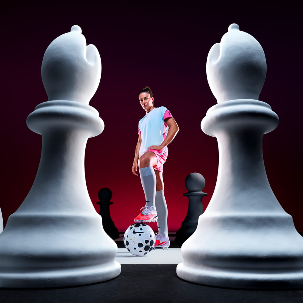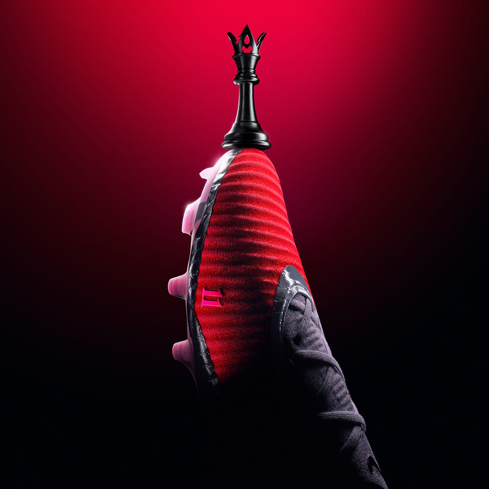 王冠を思わせるロゴ、刻まれたシグネチャーナンバー「11」。このスパイクは、ピッチ内外で時代を導くアレクシア・プテジャスという存在そのものを映し出す。レッドとブラックは、彼女の正確さとパワーの象徴。そして煌めくメタリックアクセントは、次の世代へと続く光となり、未来を照らす。
