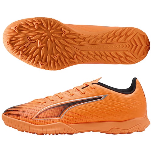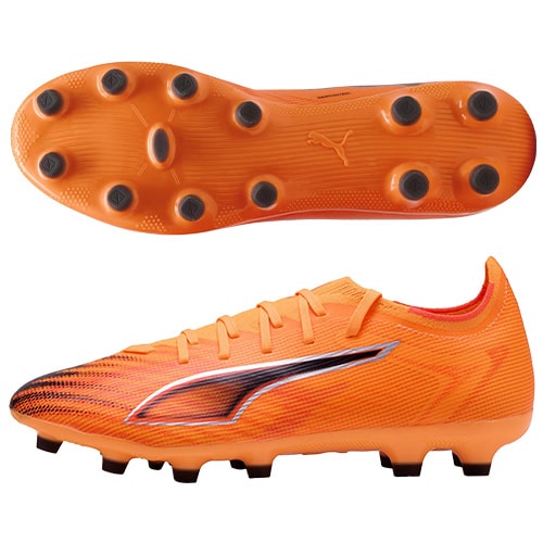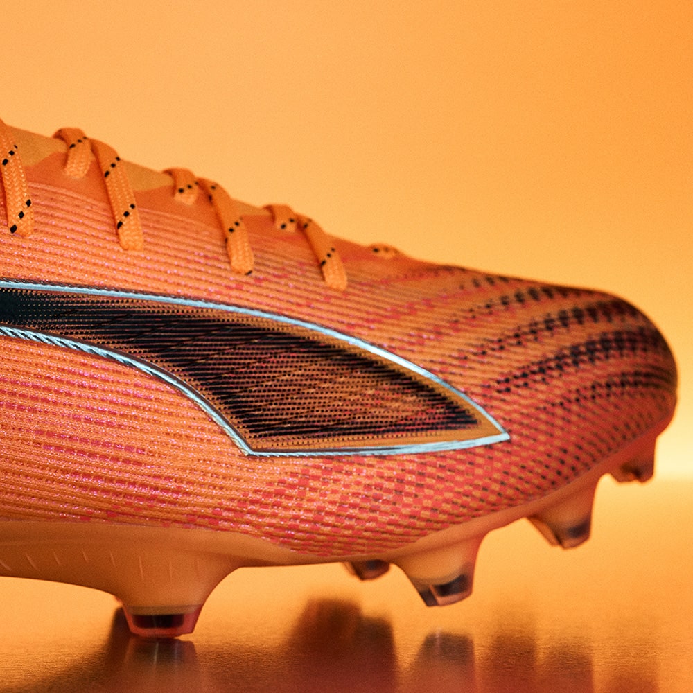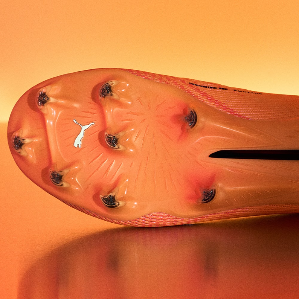 ULTRAの為に開発された、プーマ独自のアウトソール。軽量なPebaxをベースにピッチを掴み、そして強力な蹴り出しと加速力を生み出す革新的なスタッドシステムを採用。エネルギーリターンを最大化し、更なる加速を生み出します。 スピードシステム カーボン素早い推進力をもたらす弾力のあるカーボンファイバー素材と、より速い加速を実現する革新的なスタッドの配置と方向を組み合わせています。学術的な研究から多くのテストを繰り返し開発されたT字型の『FastTrax』スタッドは、加速、ターン、クイックなフェイントに対して、最適な蹴りだしをもたらします。