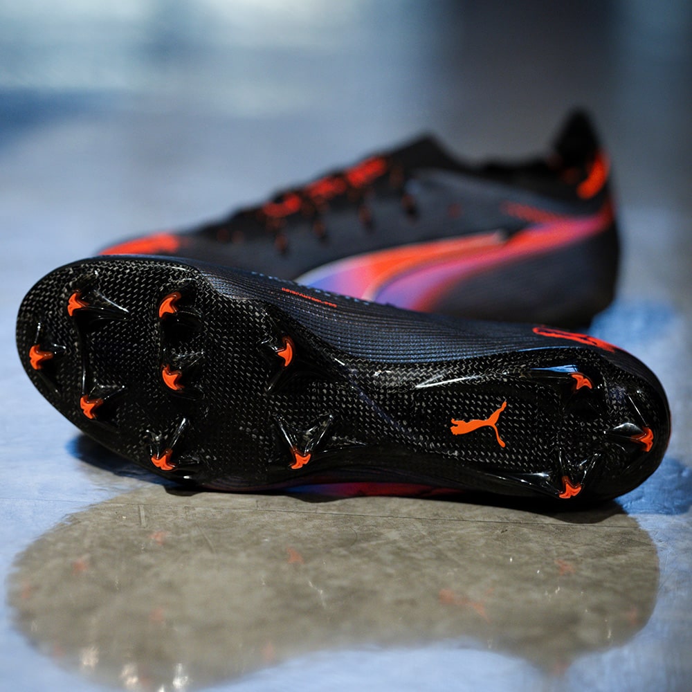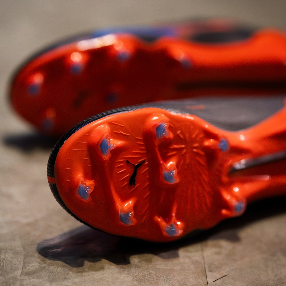 ULTRAの為に開発された、プーマ独自のアウトソール。軽量なPebaxをベースにピッチを掴み、そして強力な蹴り出しと加速力を生み出す革新的なスタッドシステムを採用。エネルギーリターンを最大化し、更なる加速を生み出します。 学術的な研究から多くのテストを繰り返し開発されたT字型の『FastTrax』スタッドは、加速、ターン、クイックなフェイントに対して、最適な蹴りだしをもたらします。