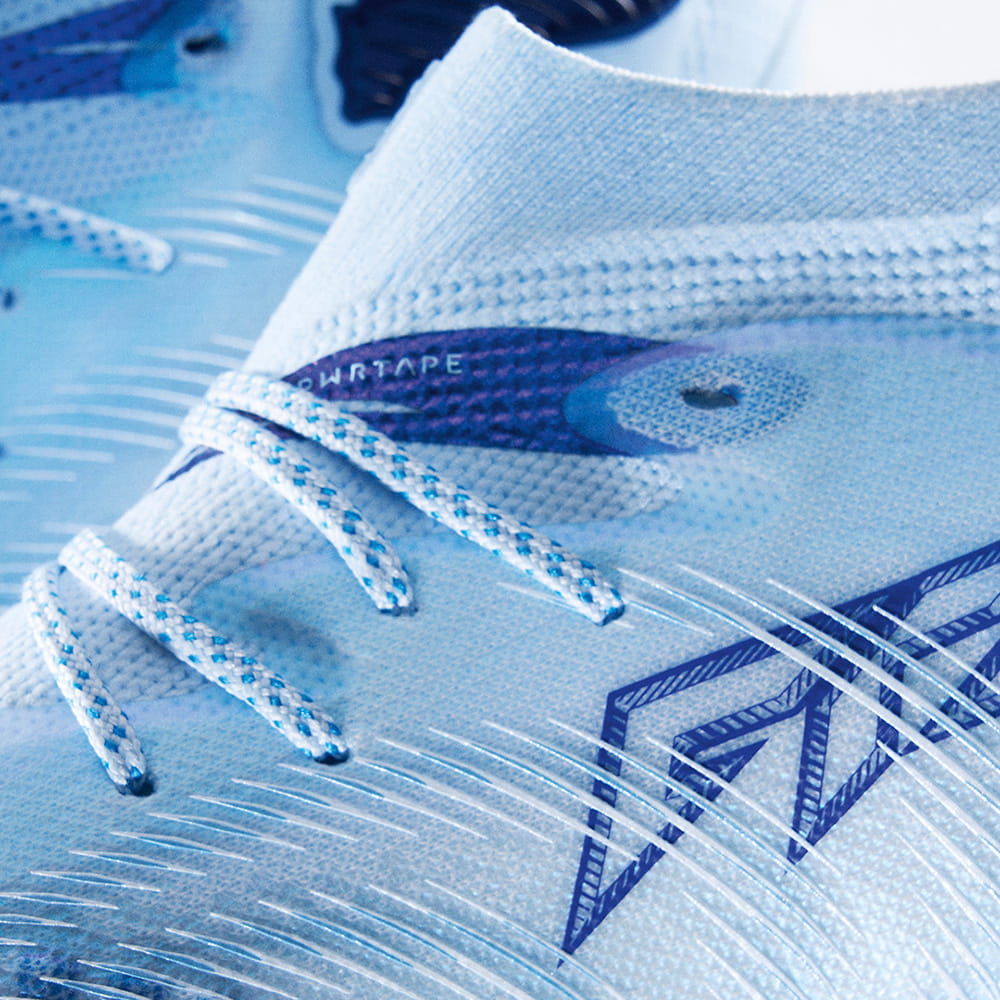 足甲部にセットされたPWRTAPEは、前作よりも進化した独自の形状となり、伸縮性をもたらし更にフィッティングを高める。