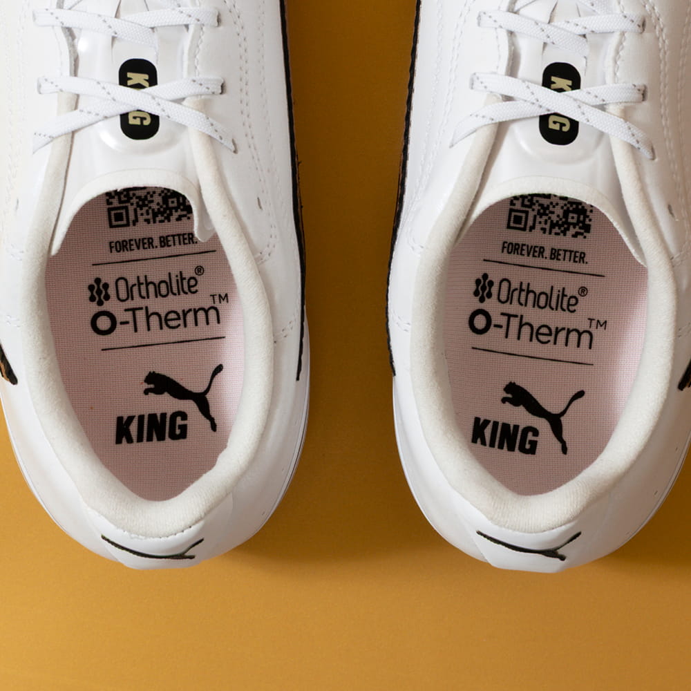 アップデイトされたNEW KING LASTは、足幅、ボールガース、インステップガース、トゥーガースとあらゆる面でアップデイトし、快適性を向上。すべてのプレイヤーに対応し、快適なフィット感を提供する。また、エンジニアードニットで構成されたソック構造は、クッション性のあるタンポッドとダイナミックレーシングシステムを組み合わせて設計。伸縮性の高いエンジニアードニットが快適性、安定性、サポート性、確実なフィット感をもたらす。更に、オーソライト社のカスタムフィットヒールパッドは履いているうちにプレイヤーの足に適応し、カスタマイズされたフィッティングを提供。密着したヒールパッドが、快適さと完璧なロックダウンを生み、フィット感を向上させる。