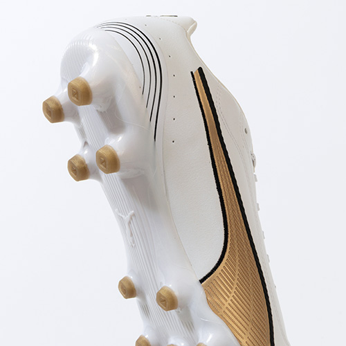 ●日本でプレーをする全てのプレーヤーの為に開発をされた軽量HG/AGソール。Pebaxとポリウレタンを使用することで軽量化を図り、台形のスタッドベースメントで安定性と強度をもたらすスタッドの地面接地面に凹凸をつけることで滑りを軽減することで、人工芝、土、天然芝での使用を可能にしたアウトソール。