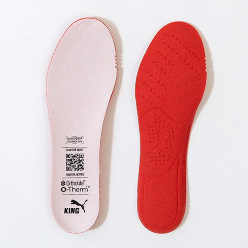 ●内蔵されているオーソライトカスタムフィットヒールパッドは、履いているうちにプレイヤーの足に適応し、カスタマイズされたフィッティングを提供。内蔵量を調整し、自然な着用感を実現。高いフィッティングをもたらす。Pebaxを使用した軽量性に優れるリムーバル・インソール。素材を微起毛させることでグリップを発揮し、アウトソールと一体感を生むことで、より強い蹴り出しをサポート。