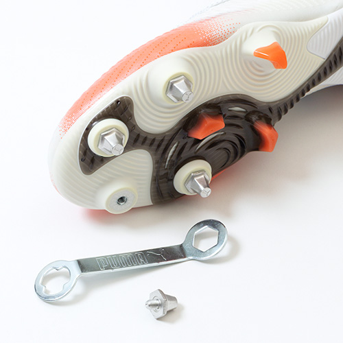 ●新しいスタッド形状、配置、向きと2つの高性能素材が組み合わせ開発されたNewアウトソール。全方向へのステップを強化し、360度の自由な動きを提供して俊敏性を高めます。6本取替えスタッド+5本固定スタッドのミックスソールを採用。