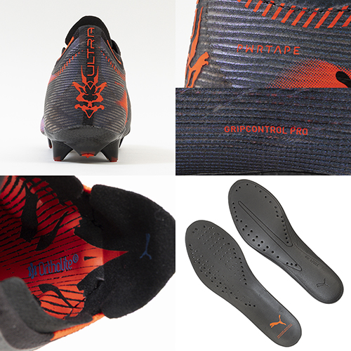 ●極薄のマイクロファイバーで形成されるグリップアッパー素材に凹凸の加工を追加。スピードに乗った際でも的確なボールコントロールとシュートをサポートします。さらに全面を覆うことで、スピードに乗った際のシューズの保形性を持たたしつつ、濡れたピッチでの水の浸透を軽減する効果も発揮。