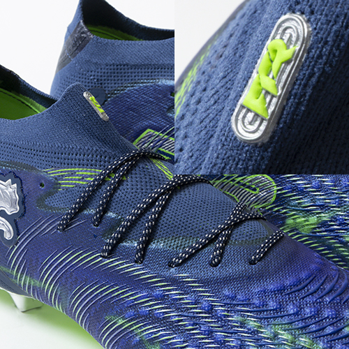 ●軽量で強度と柔軟性に優れる樹脂素材PWRTAPEを足甲部にセット。進化した独自の形状で伸縮性をもたらし更にフィッティングを高め、足首廻りを完璧にロックダウンします。PWRTAPEはより高い次元でのフィット感を実現し素早いタ加速などグラウンド上で必要なアジリティ能力を引き上げます。