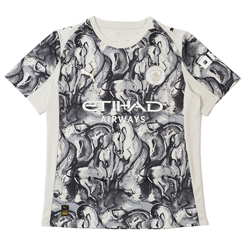 コレクションの中心となる『Man City Year of the Horse ジャージ』には、手描きの火馬(ひうま)のアートをあしらう。伝統にスピードを掛け合わせた一枚は、試合の日からライフスタイルにも溶け込む。関連商品