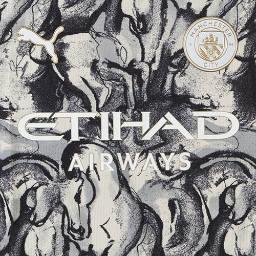 コレクションの中心となる『Man City Year of the Horse ジャージ』には、手描きの火馬(ひうま)のアートをあしらう。伝統にスピードを掛け合わせた一枚は、試合の日からライフスタイルにも溶け込む。