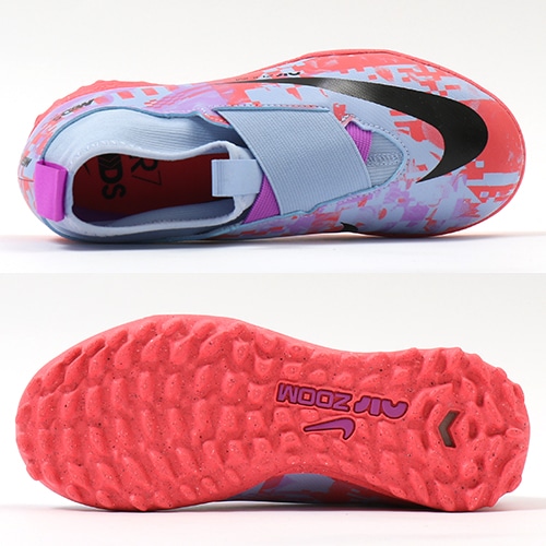 - 限られた特別なプレイヤーだけが着用できるスペシャルコレクション「MERCURIAL DREAM SPEED(マーキュリアル・ドリーム・スピード)」の2023年春の新作コレクションが登場。どのポジション、どの場所からも稲妻のようなスピードでゴールを狙えるサッカースパイク『AIR ZOOM MERCURIAL(エア ズーム マーキュリアル)』のハイカット形状「SUPERFLY(スーパーフライ) 9」のACADEMY(アカデミー)/コアモデルTF(ターフコート)対応ジュニア用トレーニングシューズ。