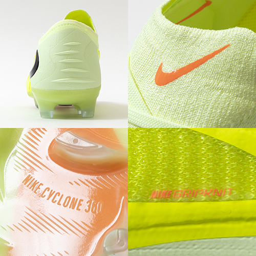 ●「Nike Cyclone(ナイキ サイクロン)360プレート」でディフェンダーをすばやく突破。一体型の円錐形スタッズを追加して配置し、かかと上部から前足部にかけて体重を効果的に分散。これによりバランスが良くなり、足裏に均等に圧力がかかるため、スピーディーなプレーを可能にしながら、より快適な履き心地が実現。