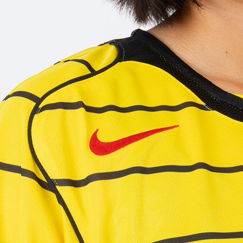 通気性に優れた素材を使用し、涼しく快適な状態をキープ。フィールドの中でも外でも、2000年代半ばのスタイルを演出します。90分間の試合中ずっと最高のパフォーマンスを発揮できるようにデザインされています。曲線的なライン、非対称のデザイン、異素材の組み合わせにより、トータル 90コレクションは2000年代を象徴するキットの一つとなりました。軽くて通気性に優れた滑らかなニット素材。 背面、サイド、袖のメッシュパネルで通気性を強化。