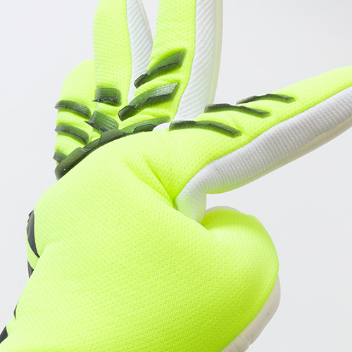 - adidas「PREDATOR(プレデター)」シリーズのフットウェアとデザイン連動した、ポジティブカットGK(ゴールキーパー)グローブ。