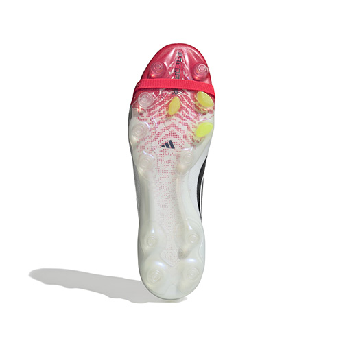 ●ミッドフットに搭載されたPowerspineテクノロジーによる安定性が、力強いシュートを支える。アウトソールにはフルレングスのStrikeframeを採用し、人工芝で優れたグリップ力を発揮。