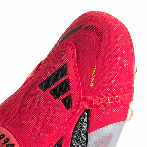 ●アイコニックなプレデターのフォールディングシュータンがデザインを完成させている。adidasのサッカーヘリテージを象徴するこのシュータンは、シューレースを覆うことで、プレーのたびに確かなボールタッチを実現。