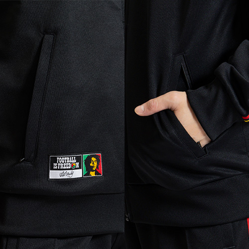 ジャマイカ×ボブ・マーリー オリジナルス トラックトップで、伝統とモダンな感覚が融合した世界に足を踏み入れよう。アウェイユニフォームの鮮やかなアクセントにインスパイアされたこのトラックトップは、サッカー文化へのオマージュであり、伝統とコンテンポラリーなスタイルを融合。
