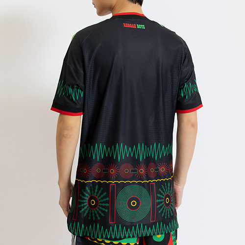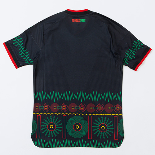 バイブス溢れるレゲエミュージックとボブ・マーリーのレガシーを大胆にデザインに落とし込んだ、ジャマイカ 26 x ボブ・マーリー アウェイ オーセンティックユニフォームに身を包み、自信をまとってピッチに立とう。試合での激しいプレーに対応できるよう設計されたこのユニフォームは、力強いジャマイカのアイコニックなカラーリングをあらゆるディテールに宿している。