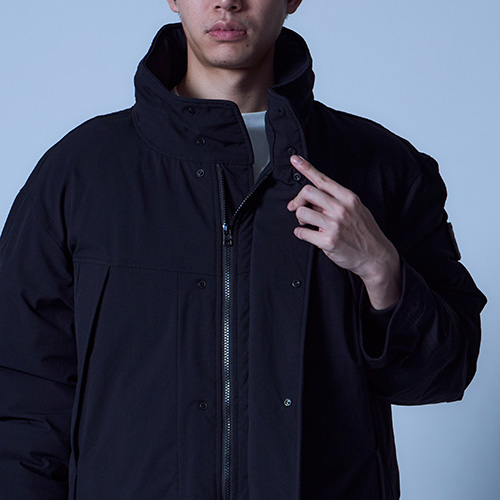 ボリューム感ある中綿を使用したモンスターパーカー。高い防寒性と圧倒的な存在感を放つビッグシルエットで、機能性とデザイン性を両立。表地に撥水加工を施しているので、あらゆるシーンで頼れる一着です。