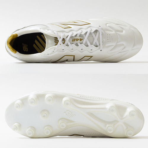 履き心地とボールタッチを求めるプレーヤーに人気のフィッティングシューズ「442(ヨンヨンニ)」がv3にアップデート。「442(ヨンヨンニ) V3」のELITE(エリート)トップモデルのHG(ハードグラウンド)/AG(アーティフィシャルグラス)対応スパイク。やや細めの足型のプレイヤー向けDサイズウィズモデル。