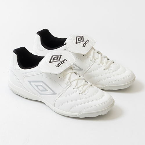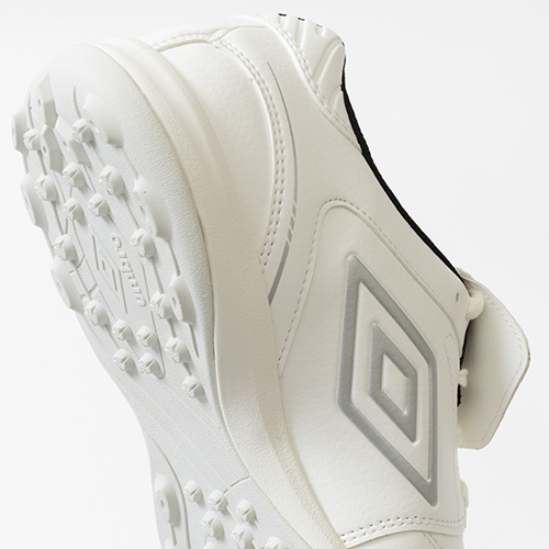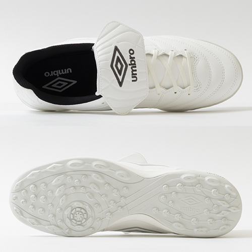 umbro『ACCERATOR(アクセレイター)』シリーズの2026年春夏モデルにKAMO別注モデルが登場。アンブロのロゴをシュータンに刺繍で大胆に表現し、クラシックなイメージを彷彿させるロングシュータンモデル。日本国内企画のワイドラスト前足部を更に広げたEXワイドラストのトレーニングシューズ。